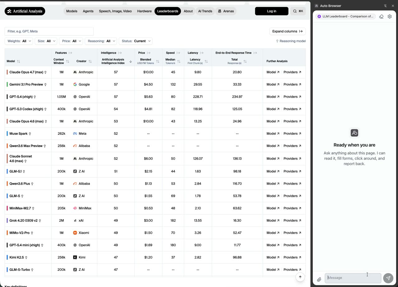 Most agent tools marry you to a single model. Auto Browser lets you pick — and switch — without reconfiguring the agent or losing your conversation.